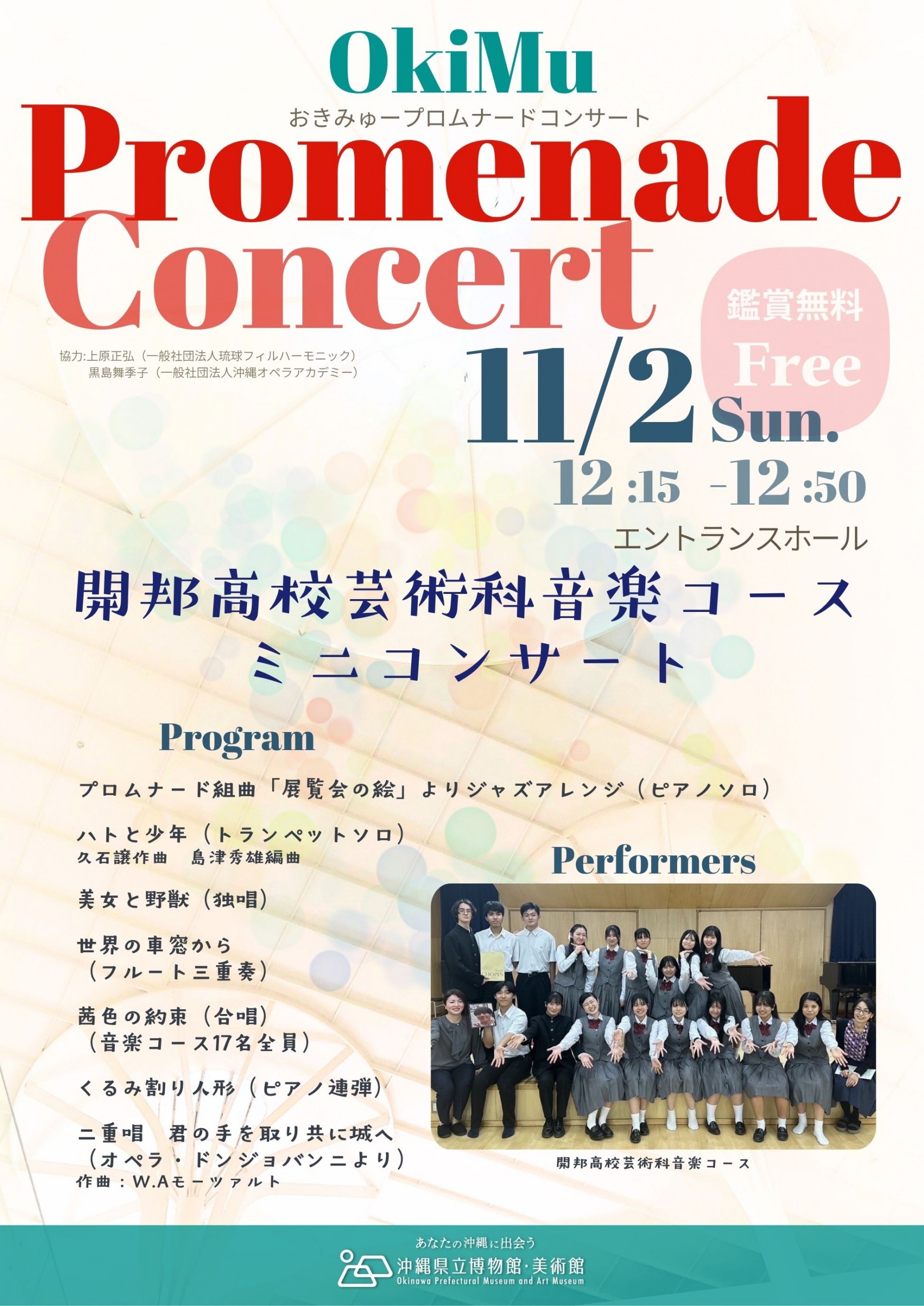 今回のおきみゅープロムナードコンサートは、沖縄県立開邦高等学校芸術科音楽コース3年生によるミニコンサートです。
