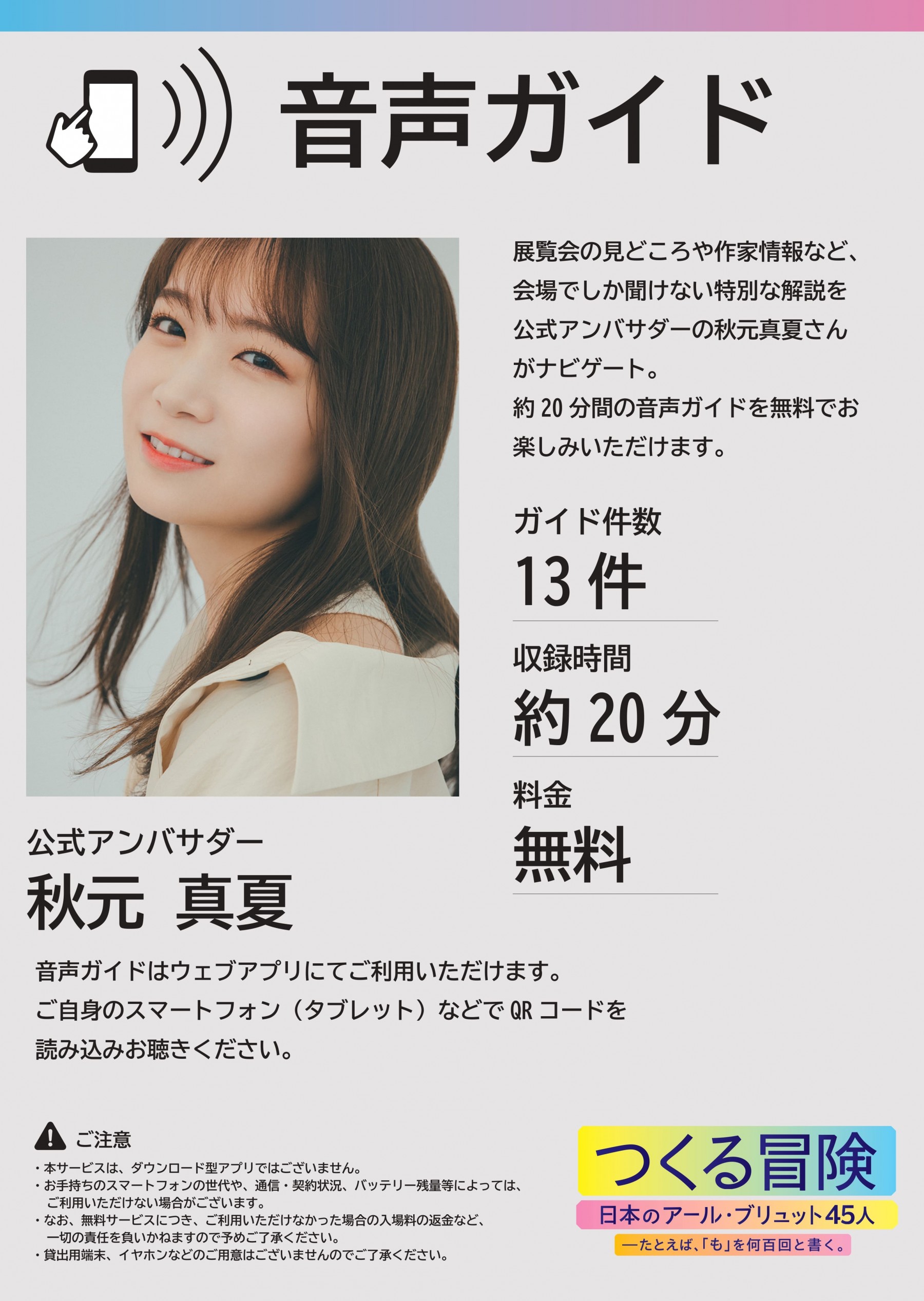 展覧会の見どころや作家情報など、会場でしか聞けない特別な解説を公式アンバサダーの秋元真夏さんがナビゲート。