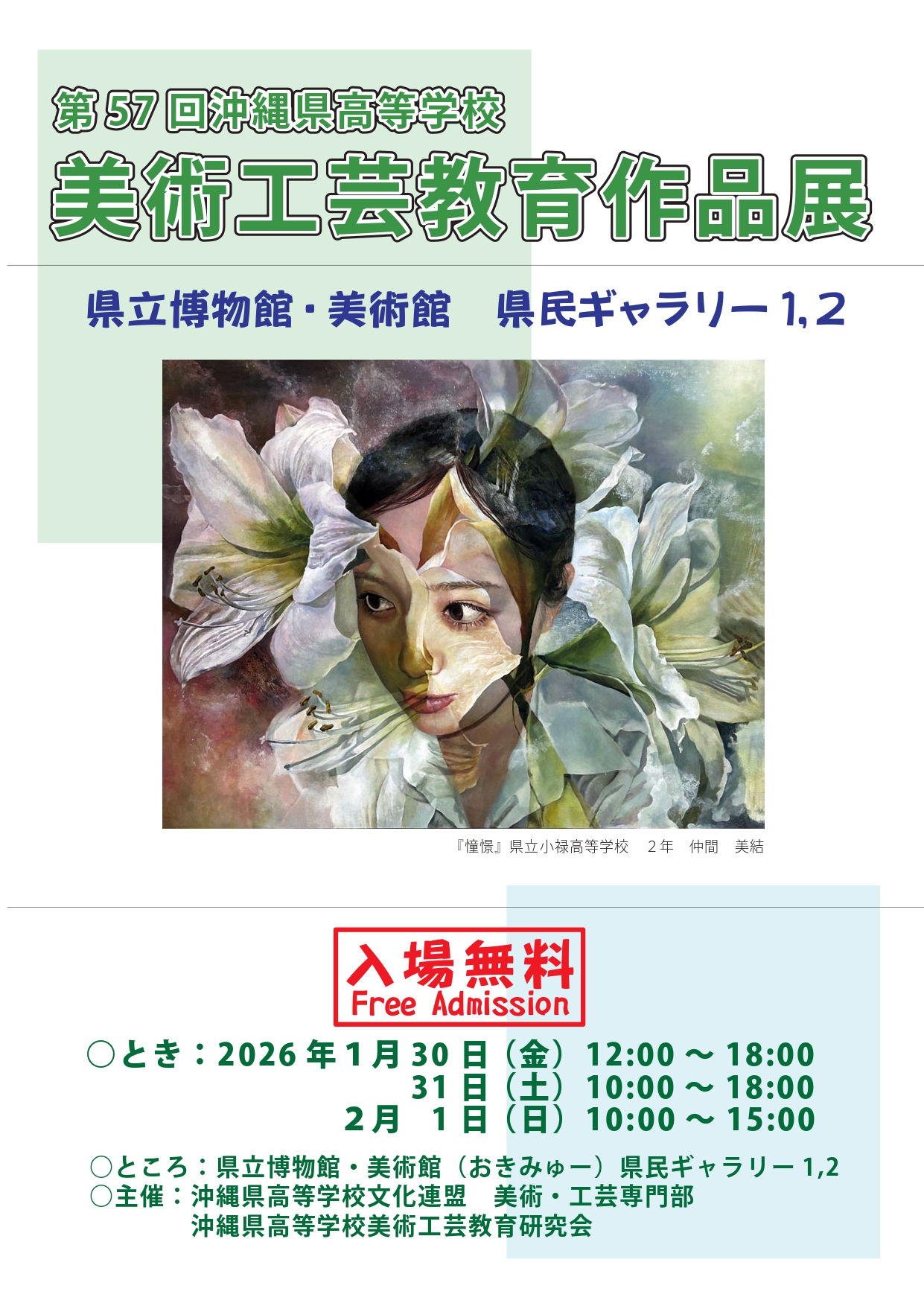 <主催者からの紹介文> 高等学校の美術の授業で制作した県内高校生の作品展で、各学校の様々な題材によるユニークな作品を展示