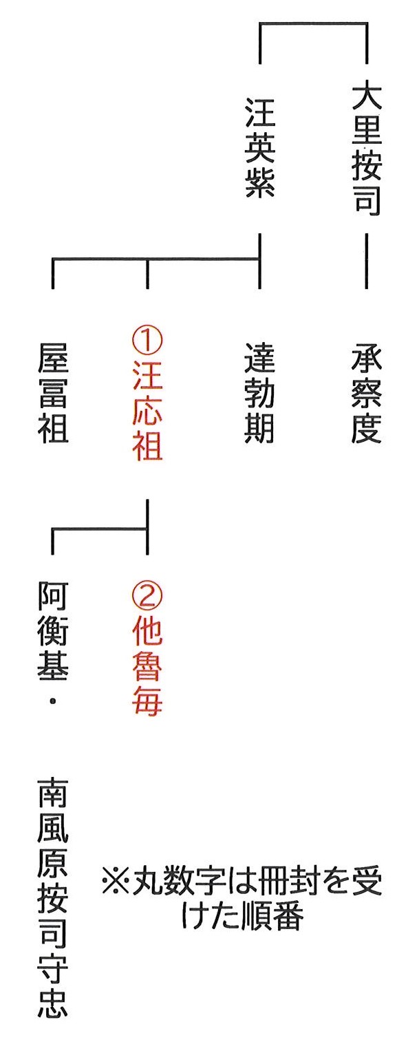 山南王で冊封を受けたのは汪応祖と他魯毎の2名なので、国際的に認められた琉球の国王はこの二人という捉え方になります。但し、山南が明朝へ朝貢を始めたのは1380年で、その時期の沖縄本島南部の統治者は承察度となります。冊封される以前ではありますが、明朝へ朝貢したことで国として認識されることになります。よって、対外的に国として認められてはないものの、国として対外的にアピールしたことになります。そして最終的に「琉球国山南王」の印綬をもらい受けた統治者を国王とするのであれば、承察度を加えた3名を国王として見ることができます。