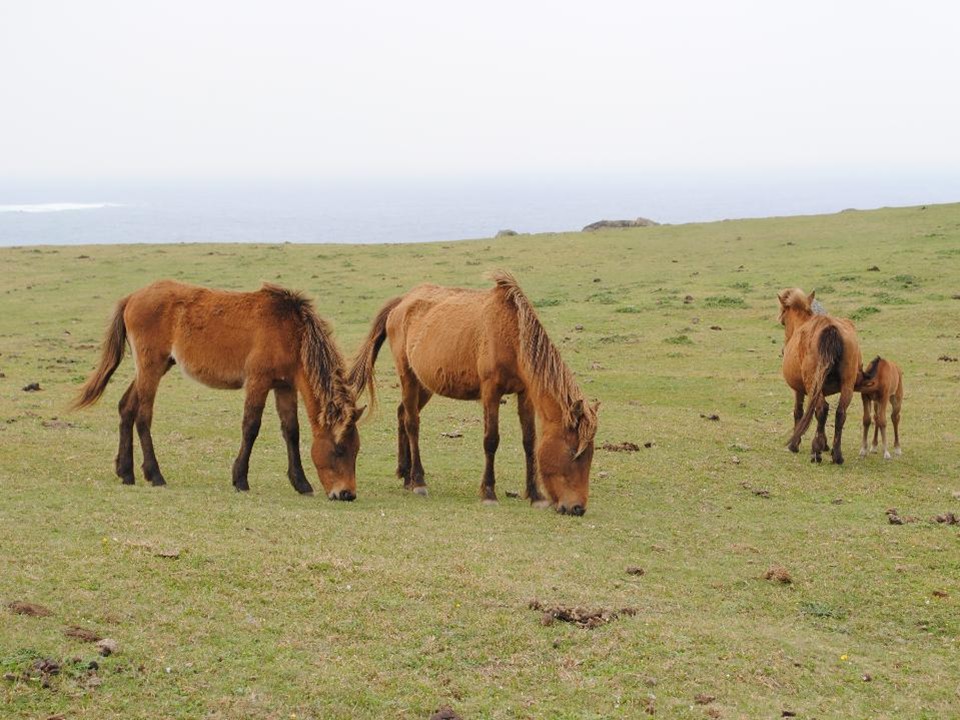 小柄の在来馬で、体高は1.1mほどです。400年以上にわたって、与那国島で人とともにくらしてきた大切な相棒です。かわいらしいですね。