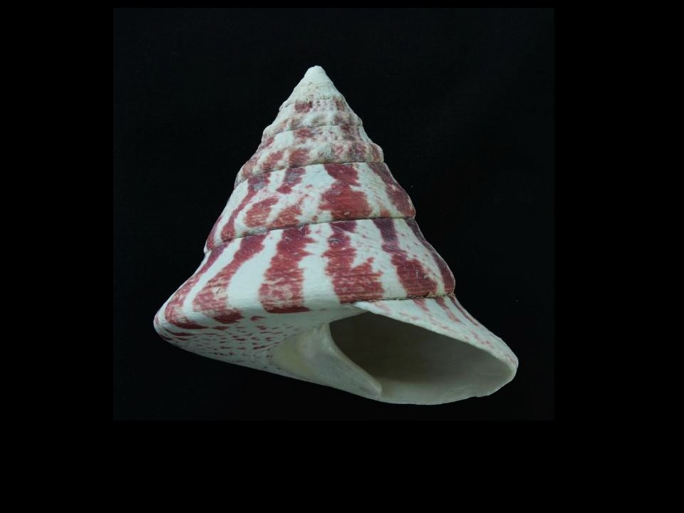 円錐形の大型巻貝で、殻径10cmを超えるものも普通に見られます。外層は石灰質で赤色の斑紋が鮮やかで、更紗のようであること、形状が馬の蹄に似ていることから、江戸時代にサラサバテイ(更紗馬蹄)と名付けられたようです。
