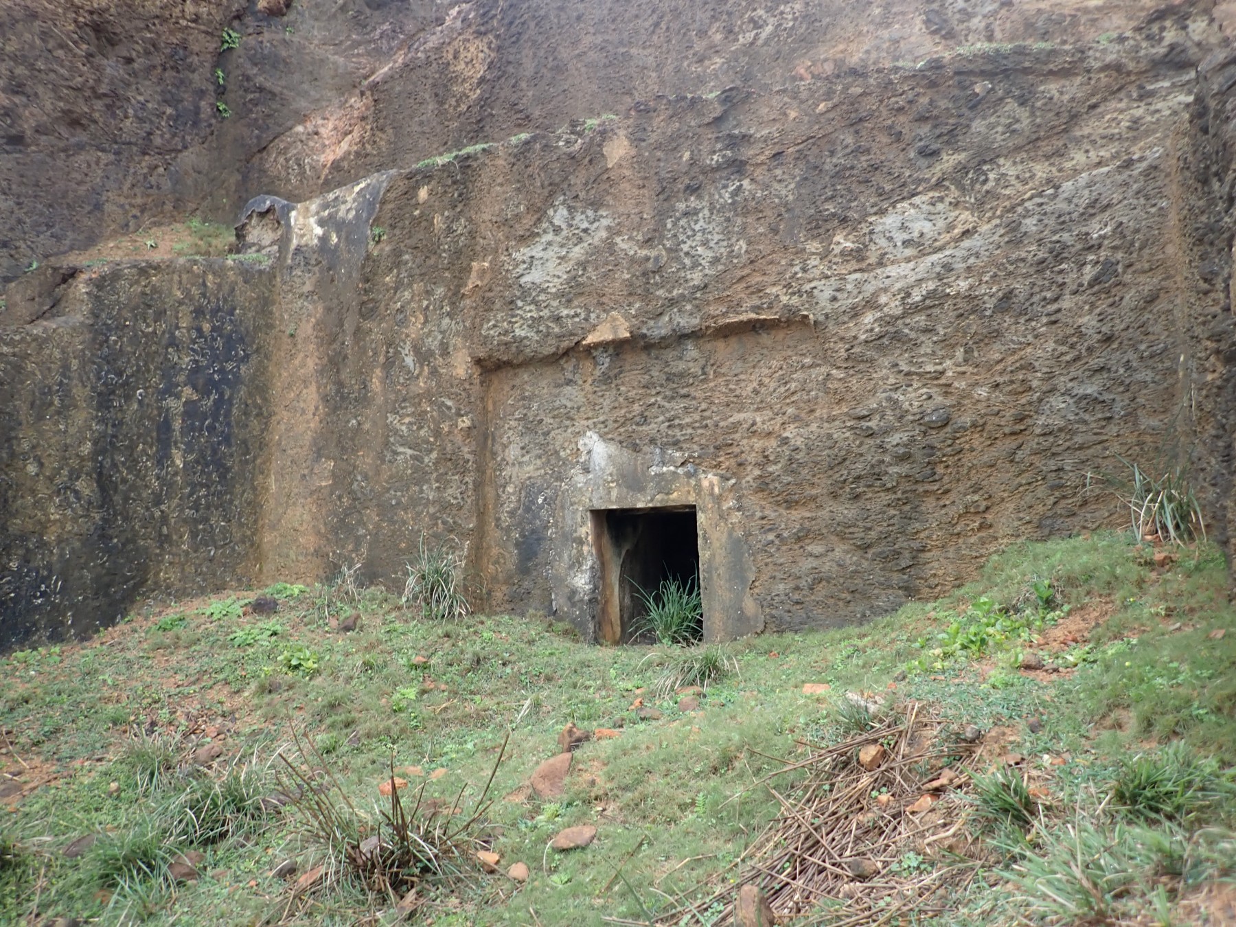 印良苅原古墓群の多くは石積みをほとんど用いておらず、砂岩を削り込んで造っています(写真3)。