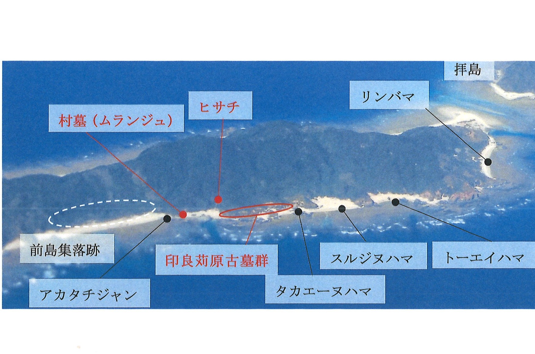 この墓は「村墓(ムランジュ)」と呼ばれ、前島集落跡における最初の共同墓地であったとされ、墓室内の納骨スペースが無くなってきたことから、その北側にて各家で墓を造られるようになったとされています。