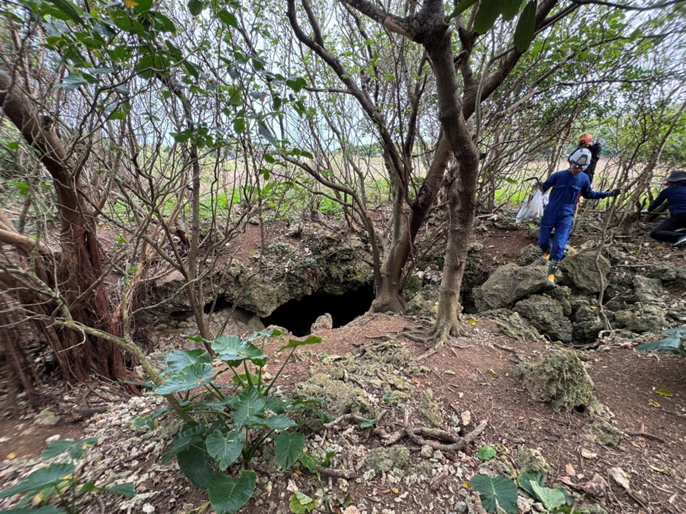 カーバルガーは、島の北東部の林の中に位置する洞窟で、貴重な水源として利用されてきました。今回、状況確認のための詳しい踏査・記録と試掘調査を行いました。