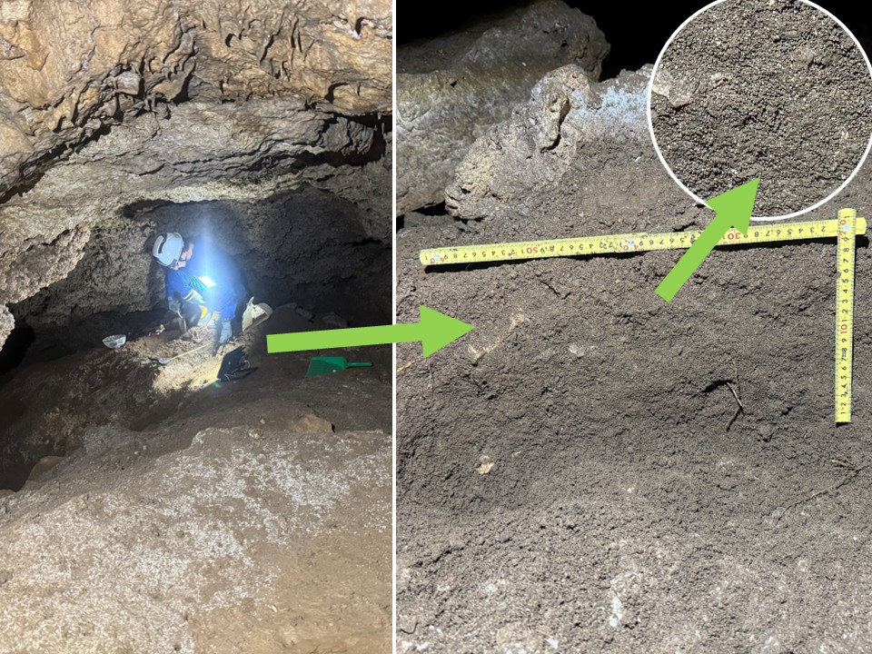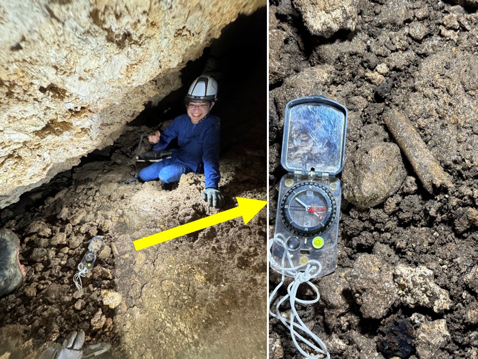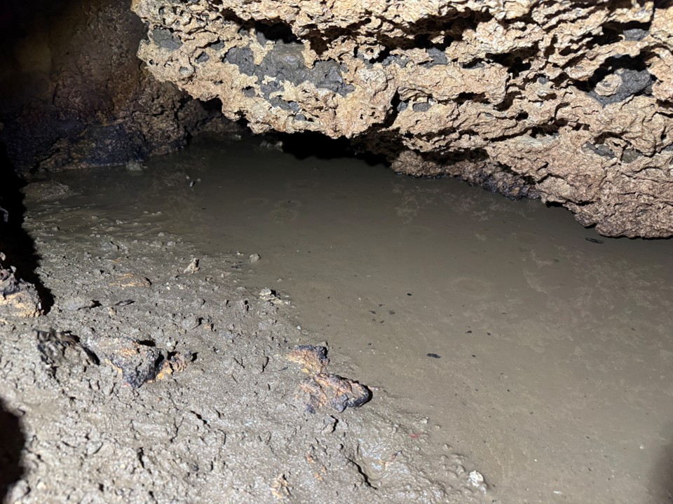 洞奥部には、現在でも水たまりが見られました。