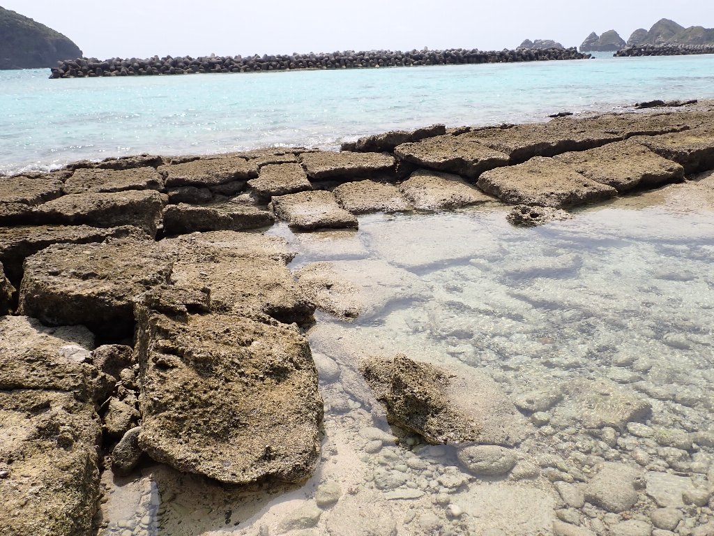 写真5 阿嘉の海岸に見られる石切り場跡