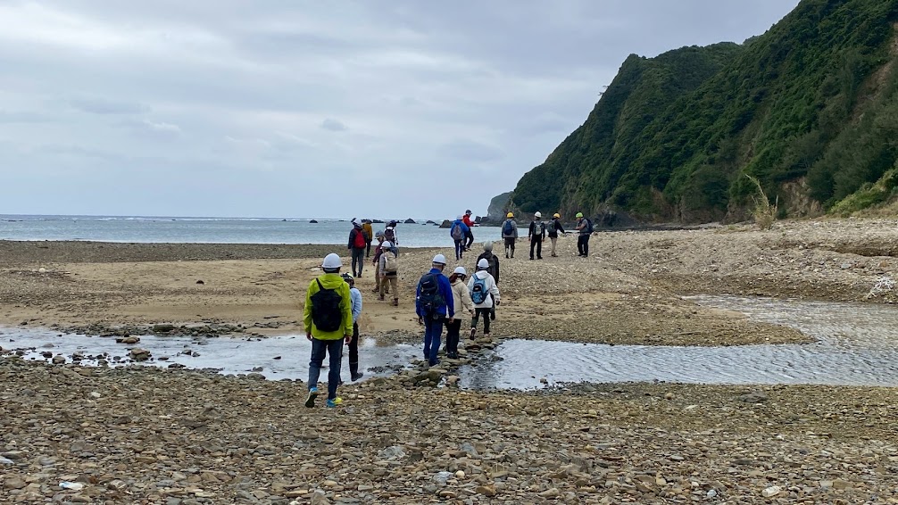 本学芸員講座・ジオツアー開催にあたり、天仁屋区の方には大変お世話になりました。 また参加者の皆様におかれましては、途中、数カ所の難所をお互い助け合いながら乗り越え、おかげさまで全員がバン崎まで到達、怪我なく安全にツアーを終了することが出来ました。 この場をお借りしてあらためて御礼申し上げます。