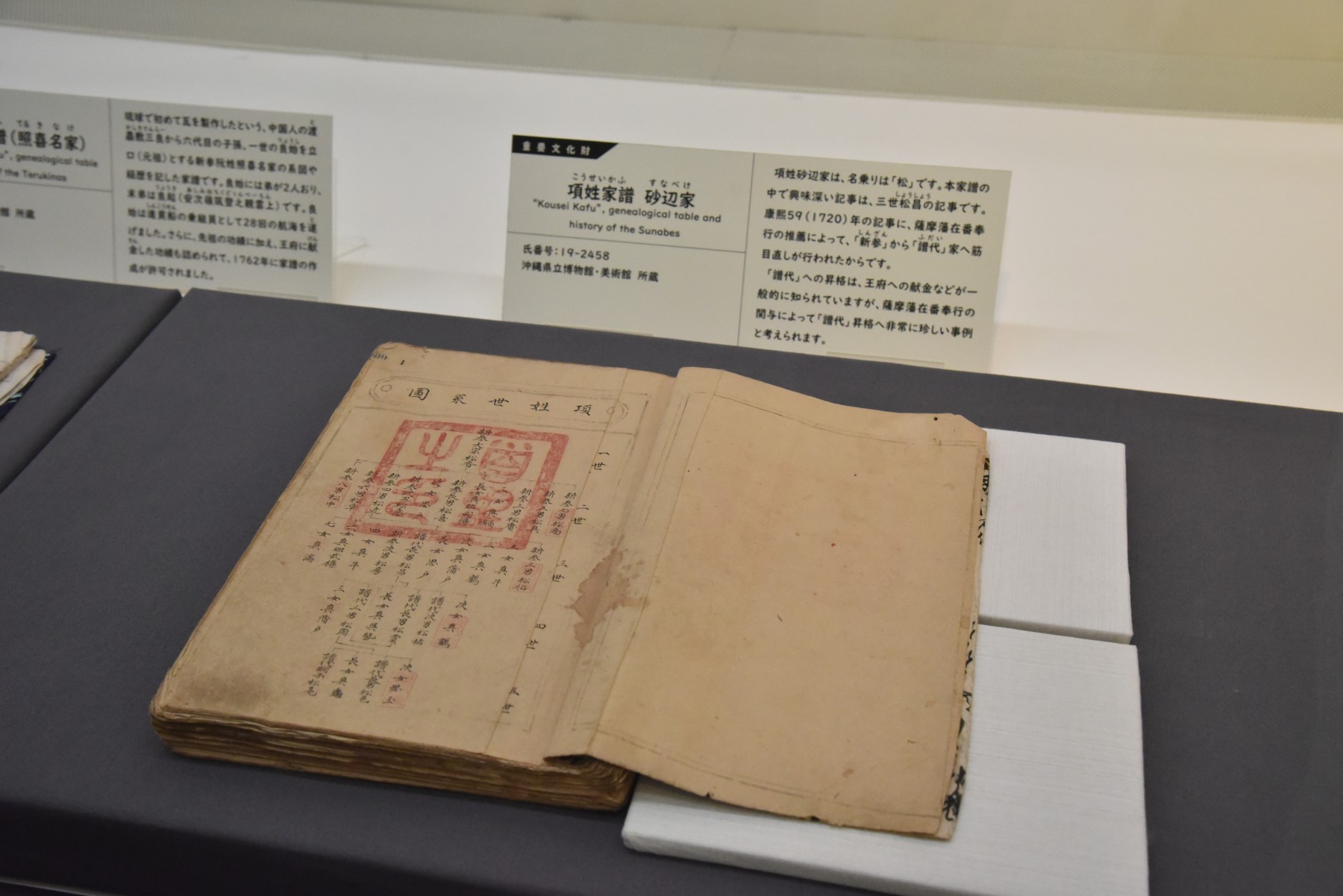 本展では、令和7年9月26日付の官報告示をもって、新たに重要文化財に指定された琉球家譜とその家譜関係文書を展示いたします。